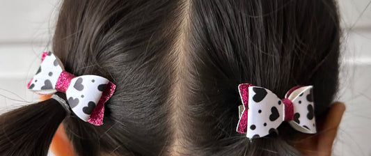 Black hearts on white and pink glitter 2pcs mini bows