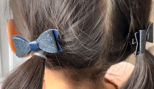 Blue Glitter 2 piece mini bows on alligator clips