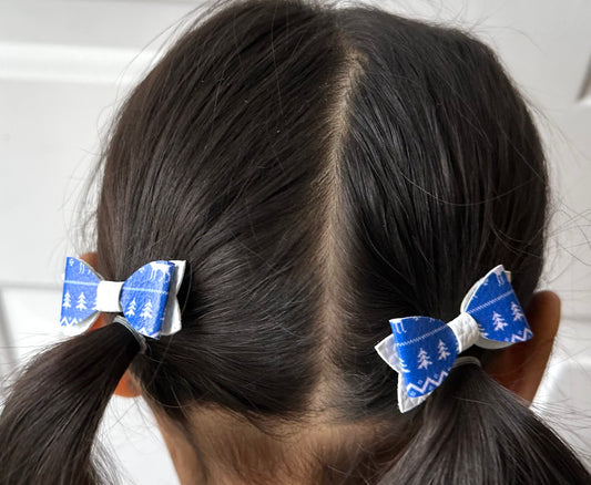 Blue and white winter 2pcs mini bows
