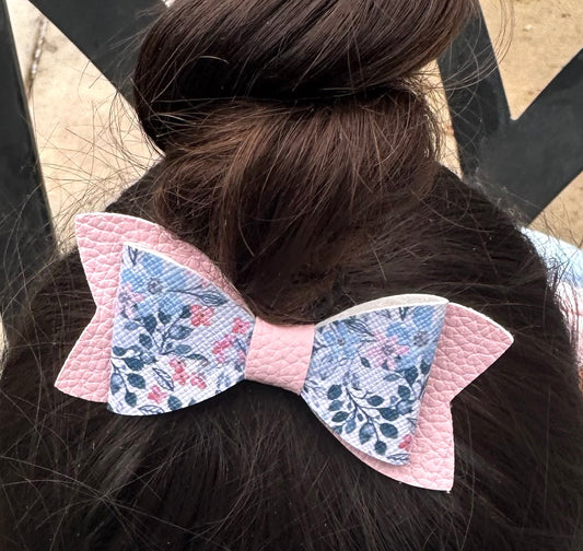Blue and pink flower bow